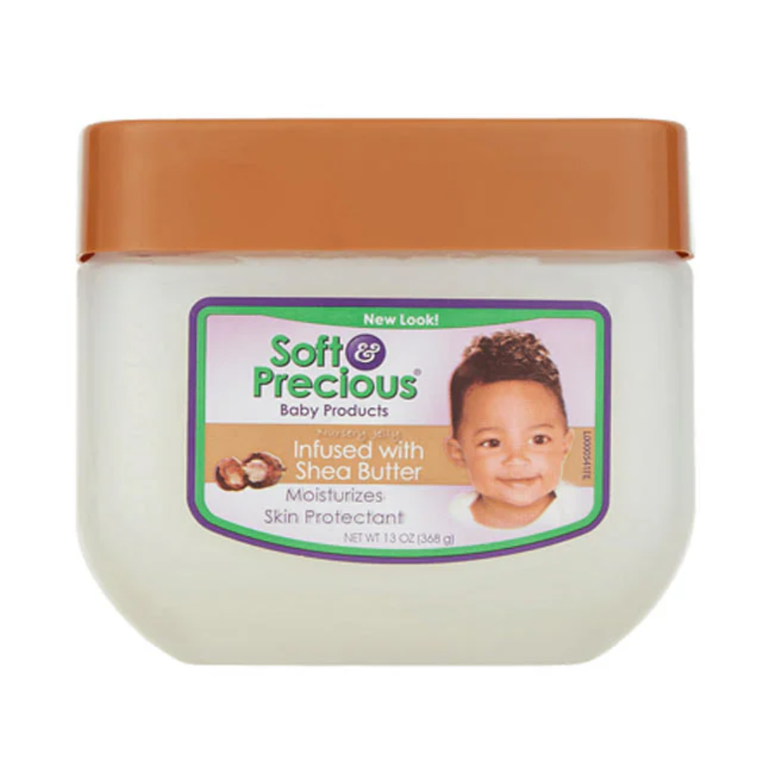 Soft & Precious' Shea Butter Jelly temporarily protects, cutes, scrapes, burns, and helps relieve chapped or cracked skin / lips. It is amazing to use when your child struggles with skin problems in windy and cold weather conditions.