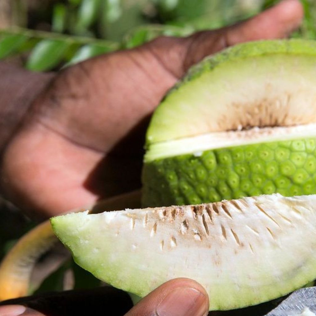Related to mulberry, fig, and jackfruit, breadfruit is native to many regions across the tropics, and is known for requiring minimal care and bearing fruit much quicker than other plants - its yield can be up to 200kg per year! Breadfruit trees are also drought resistant and can survive tropical storms. It is for this reason that breadfruit is such a staple part of the diet of millions of people!