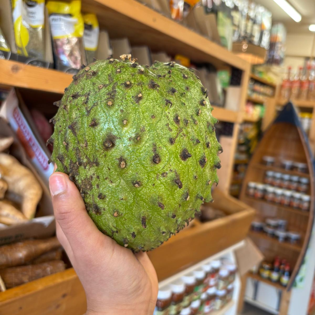 Soursop, also known as Graviola, is a spiky green fruit with a custard-like interior. Its sweet and tangy taste makes it a favourite for juices, smoothies, and desserts throughout the Caribbean. Beyond its delicious flavour, soursop is also believed to have potential health benefits, including antioxidant properties and immune system support.