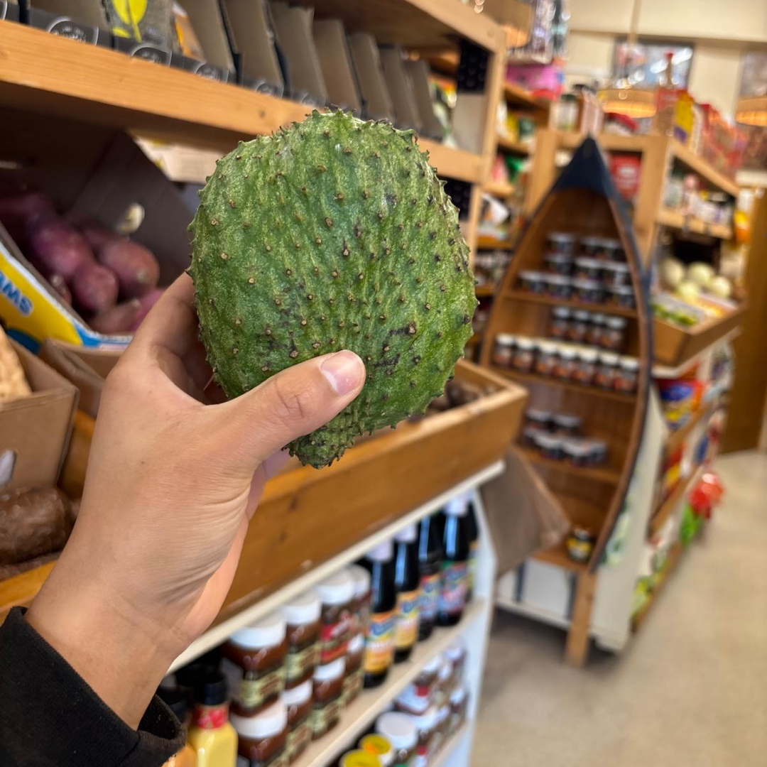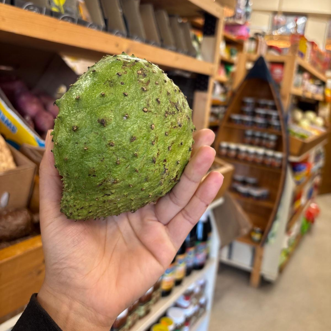 Soursop, also known as Graviola, is a spiky green fruit with a custard-like interior. Its sweet and tangy taste makes it a favourite for juices, smoothies, and desserts throughout the Caribbean. Beyond its delicious flavour, soursop is also believed to have potential health benefits, including antioxidant properties and immune system support.